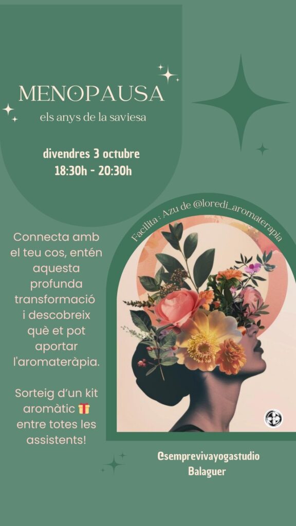 Aquest taller serà facilitat per Azu de @loredi_loredi, Aromaterapeuta Integrativa i Holística Certificada que ens oferirà un tast aromàtic dels olis essencials, vegetals i hidrolats en què podem recolzar-nos durant aquesta important transició.